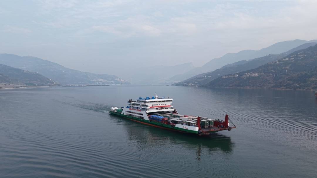 图为“千里轻舟”奉节脐橙航线货船。(黄翱 摄)奉节县脐橙产业商会会长周登平介绍,“千里轻舟”奉节脐橙航线以“公转水”为核心,航线采用“货车直接上船”的滚装模式,减少“二次搬运”,降低装卸损耗与费用。这批脐橙将直接送往中心城区的商超、农贸市场,实现“一车直达”。这种运输模式预计可降低综合物流成本约20%。