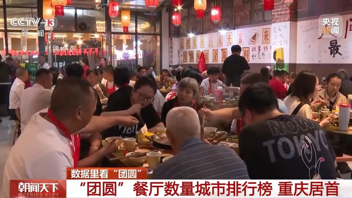 地图导航软件上,无数条通往“团圆”的路线被点亮。高德扫街榜数据显示,在“团圆”餐厅方面,名字带有“团圆”的餐厅城市排名中,重庆数量居首,温州、益阳、南阳等紧随其后。