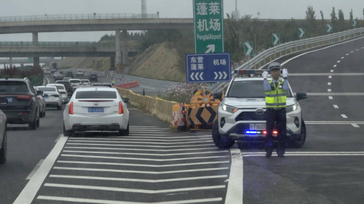 今年部分高速道路与往年存在多个不同地方,通行压力将持续增大,10月3日上午,记者经过荣乌高速前往蓬莱方向,靠近蓬莱国际机场附近路段车流量大,通行缓慢,多名交警在现场疏导。2日晚,高速福山大队执勤民警还冒雨疏导交通,处理事故。